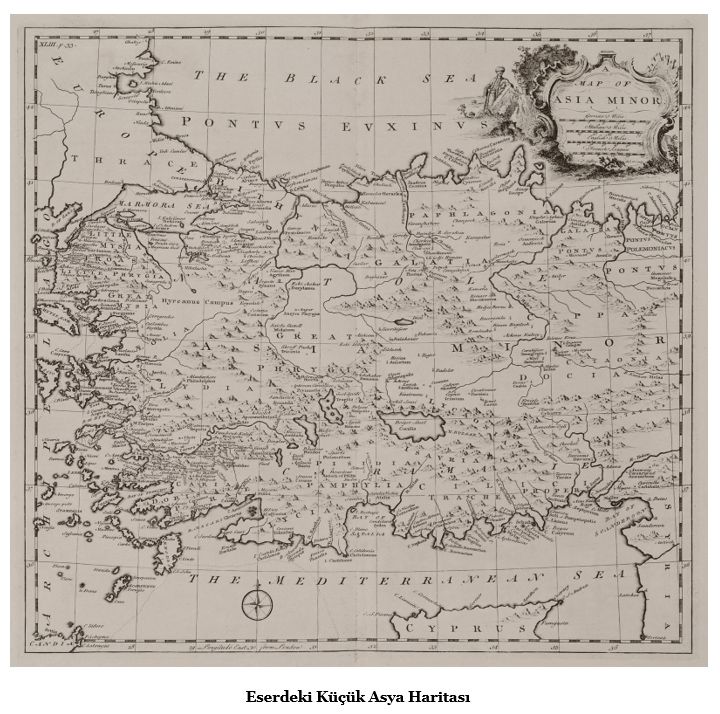 Eserine eşlik eden Küçük Asya haritası dikkatli izlenecek olursa, güzergâhın da kesik çizgilerle işaretlendiği görülecektir. Ege Adalarını gezdikten sonra İyonya bölgesini İzmir, Urla, Efes, Manisa, Milas gibi antik kent yerleşimleri başta olmak üzere dolaşan Seyyah, daha sonra İç Anadolu yöresine yönelir ve antik Frigya ve Galatya bölgelerini anlatır. Ankara’dan daha doğuya geçmeyen Pococke buradan kuzeye yönelerek Çerkeş üzerinden batıya döner ve Gerede-Bolu-Hendek-İzmit üzerinden Marmara Bölgesine girerek Boğazları, Bursa yöresini ve bazı adaları gezdikten sonra Trakya’ya; oradan da Yunanistan’a geçer.