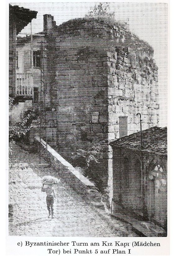 Başlıkların buluntu yerleri ve sözlü ifadeler, bahsettiğimiz parçaların bu yapıya ait olduğuna işaret etmektedir. Bu yapı, 5. yüzyıl kadar erken bir tarihten beri kullanılmıyor olmalıydı; zira bu dönemde İyon sütun başlıkları, kent içindeki yeni kilisede (bugünkü Orta Camii) kullanılmıştı. Kuşkusuz, yapının - örneğin İyon sütunlarının kilise yapımında kullanılmamış büyük gövdeleri gibi - parçaları da, Ortaçağ savunma duvarlarının yapımı için kireç ocağına getirilmiş; diğer parçalar ise, kentin evlerinde ve bahçelerinde kullanım bulmuş veya mağaralar vadisine ve Kestaneci Köyü’ne kaçırılmıştır. Sonuç olarak yapı, geçen yüzyılın 70’li yıllarında, arazinin yeniden yerleşime açılması sırasında tamamen yıkılmıştır. Yapının parçaları, süs olarak konutlarda ve yeni bir caminin inşaatında kullanılmıştır. Bu sürece Halil Paşa da katılmış gibi görünmektedir.”