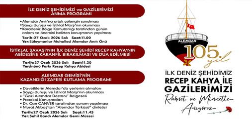 Kdz. Ereğli Belediye Başkanı Halil Posbıyık, Kurtuluş Savaşımızın ilk ve tek deniz zaferinin 105. yılında, Gazi Alemdar Gemisi ve kahraman mürettebatı ile ilk deniz şehidimiz Recep Kahya’nın minnet ve rahmetle alınacağı açıkladı. İlgili program şöyle açıklandı: