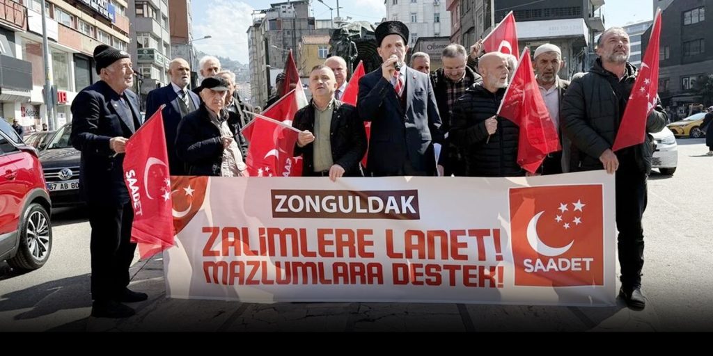 İsrail’in Mescid-i Aksa’yı ibadete kapatmasına Zonguldak’ta tepki gösterildi. Saadet Partisi Zonguldak Merkez İlçe Başkanlığınca Madenci Anıtı’nda ‘Zalimlere Lanet, Mazlumlara Destek’ başlıklı basın açıklaması yapıldı. Açıklamayı okuyan Saadet Partisi Merkez İlçe Başkanı İsmail Üstünyer, Gazze’de yaşananlara tepki göstererek, Mescid-i Aksa’nın ibadete kapatılmasını eleştirdi. Üstünyer, Milli Görüş hareketi olarak coğrafya, mezhep ve kimlik ayrımı yapmaksızın, zalimin karşısında […]